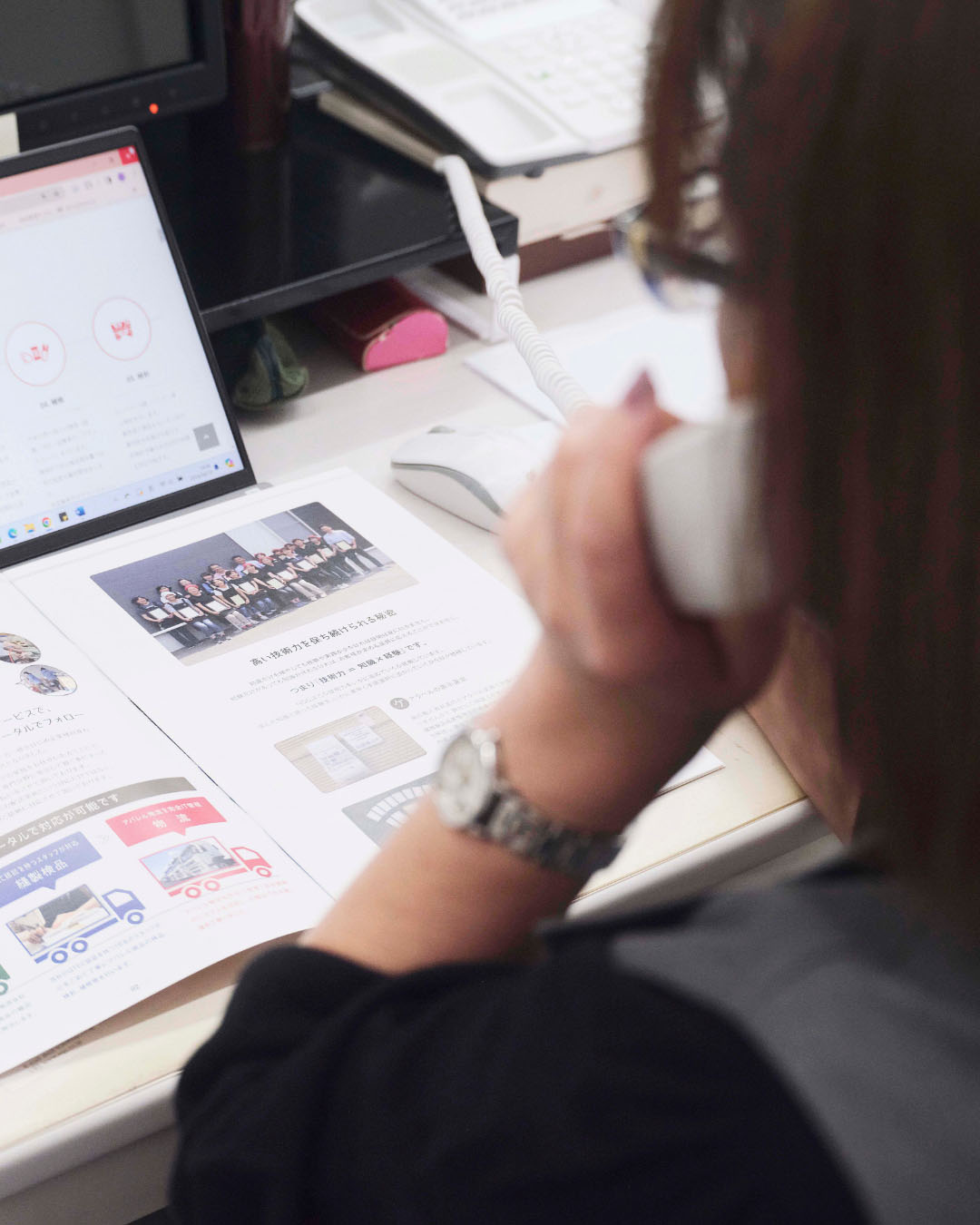 お客様から伺った要望や不満は、週1回の営業報告のタイミングで社内に展開します。ある部署への指摘が、他の部署にも当てはまることがあるので、全社に伝えるようにしていますね。外回りに出るときは、関連する部署へ「担当の方に伝えたいことある?」と声をかけることも。お客様と社内との橋渡しとなる役割を担っています。